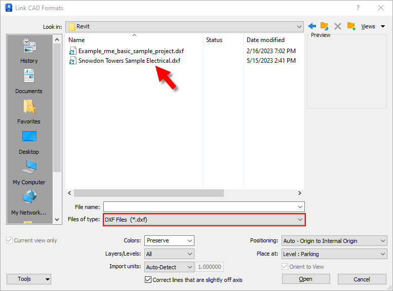 Linking a DXF file to Revit