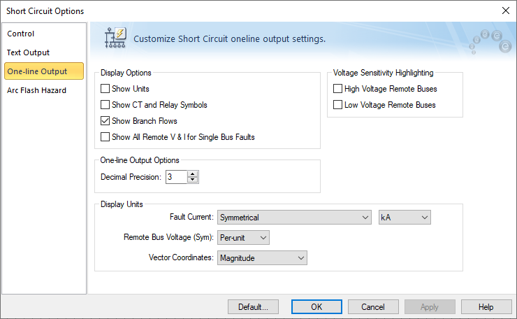 SC Options in the Short Circuit tab, and then click the One-line Output tab.