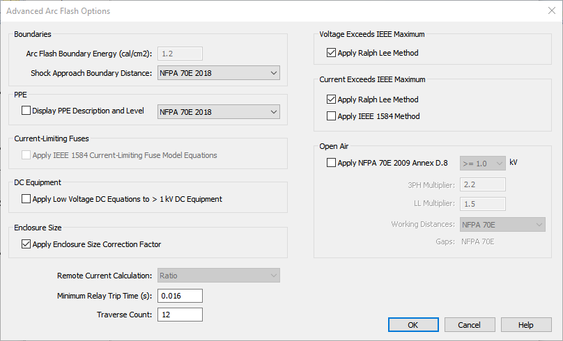 您可以应用Ralph Lee方法(默认)或清除复选框以省略计算。对于电弧闪光标准NFPA 70E d.d.3,此设置不适用。 |