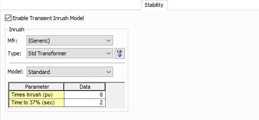 两绕组变压器-稳定性选项卡