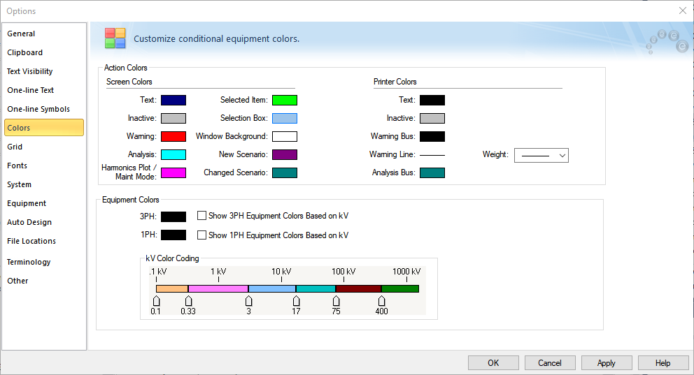 打开一个运行方式时,这些颜色生效。所有新增的元件将以新建运行方式的颜色突出显示。所有改变的项目(那些已经存在的基本情况,但在方案中被改变)的显示使用更改方案颜色。