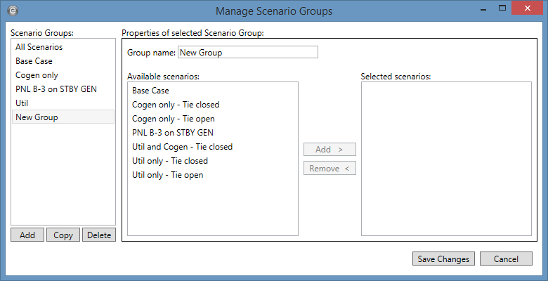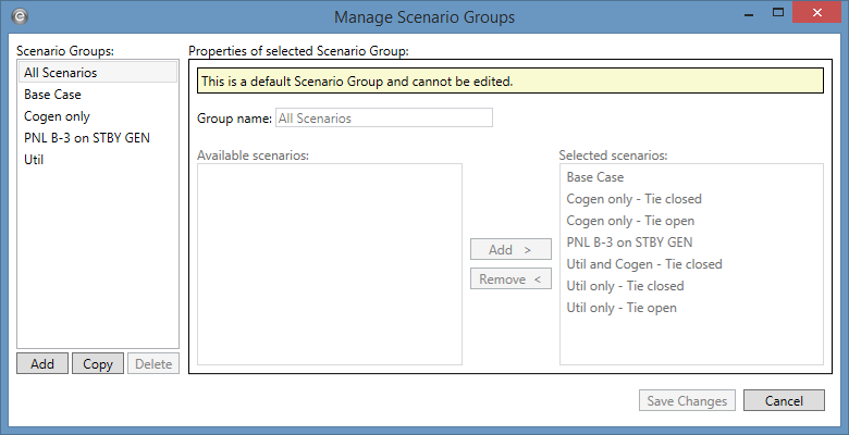 对于弧闪危害和设备容量比较报告,你可以选择你希望在报告上查看的场景集。该场景集确定了你需要评估的场景。初始的场景集为