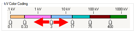 向左或向右拖动每个滑块,以设置每个范围的边界电压。当您调整位置时,kV值将出现在每个滑块的下面。