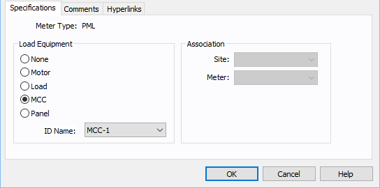 仪表可被分配到一个特定的电机,负荷,MCC,或面板。选择电机可以将所有可用的电机ID名称列表。一个电机可以分配多个仪表,但只有最后分配的一个仪表才能将数据存储在该设备元件的SCADA字段。 |
