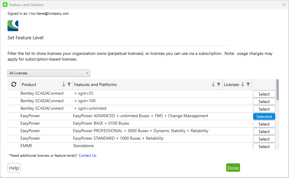 EasyPower许可证管理通过Bentley CONNECTION客户端应用处理。