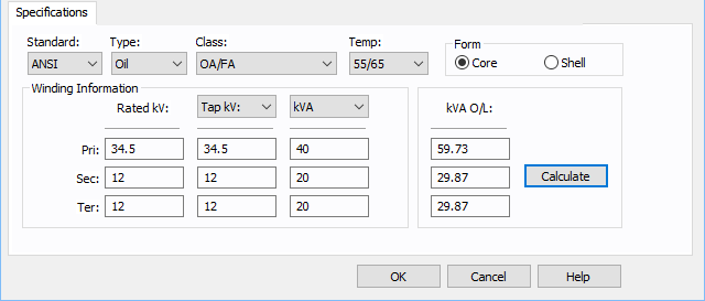 绕组分接头电压。你还可以指定分接头电压(标幺值)。如果实际的分接头电压位置,则输入额定电压值。如果需要的话,负荷分接头变换器控制可以用于确定分接头的最终设置。EasyPower自动调整模型,以适应不同的分接头,转弯比例和基于你选择。 |
