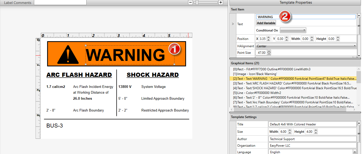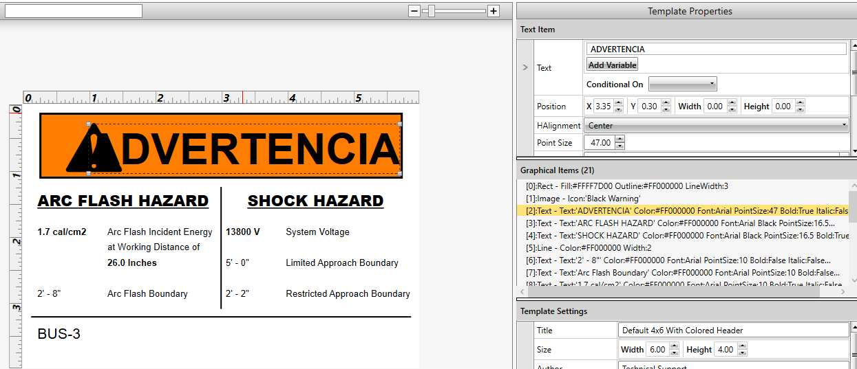 现在已经有了可以修改的自定义模板,可以使用所选的语言更新模板。对于本例,我们将使用西班牙语。我们已经指定了入射能量以显示cal/cm2,工作距离以显示英寸。.