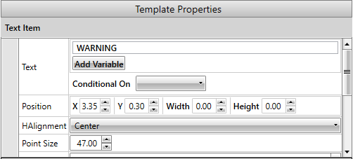 - 选择标签上的“警告”文本。注意,右侧的 文本项区域显示了文本。