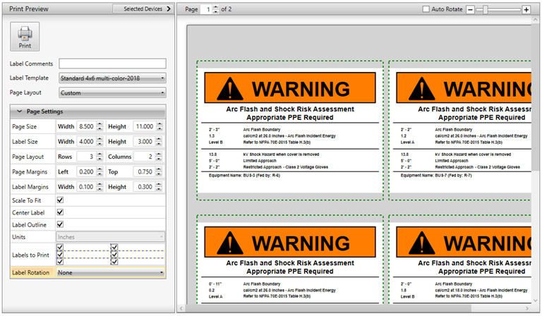 EasyPower提供了几个预先配置的页面布局,与常见的标签库存相匹配,但你可以使用一个标签库存,这不是内置的。在这种情况下,您需要指定一个自定义页面布局来匹配您的标签库存。本主题将指导你完成这个过程。
