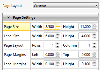 - 在页面大小领域指定标签每一页的大小。在这种情况下,我们要配置一个8.5英寸宽和11英寸高的页面。