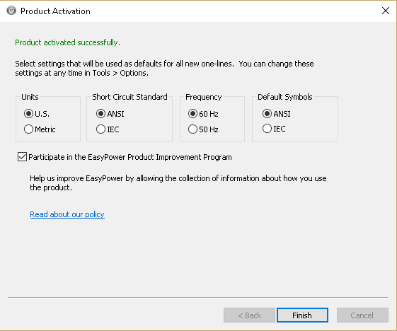 - Decida se deseja participar no Programa de melhoria do produto EasyPower marcando ou desmarcando a caixa de seleção. Nos encorajamos você a participar - o programa é voluntário e anônimo. Para saber mais sobre este programa, clique em Leia sobre nossa política.