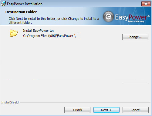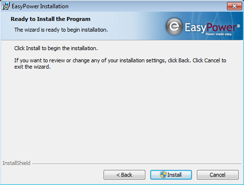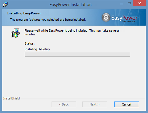 - A janela Instalando EasyPower é exibida para mostrar o progresso da instalação.
