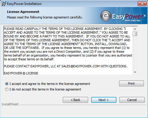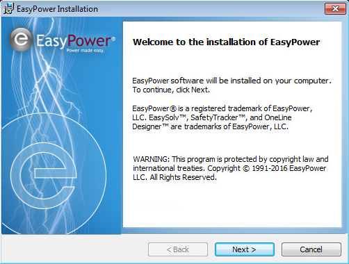 Para obter instruções de instalação do software EasyPower em seus computadores clientes, veja Realizando uma Instalação Típica.