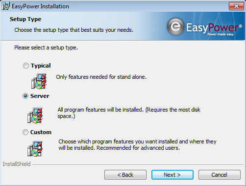 A instalação em servidor é realizada para instalações em rede. O software EasyPower é instalado em um computador servidor e em outros computadores ("clientes") na rede. O servidor gerencia o serviço de licença que o programa EasyPower usa para autorizar o software em cada computador.