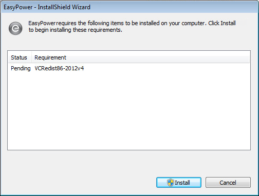 - O EasyPower exige que determinados softwares sejam instalados antes de instalar o programa. Se a instalação detecta que está faltando qualquer software pré-requisito, você é solicitado a instalar o software. Clique em Instalar e siga as instruções para instalar o software. Os passos para instalar podem variar um pouco dependendo de quais pré-requisitos são necessários.