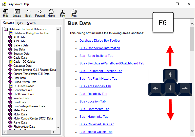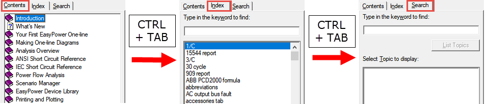 A Ajuda que é instalada com o EasyPower é um formato de Ajuda em HTML (.CHM) mais antigo que tem opções de acessibilidade limitadas, mas inclui navegação por teclado.