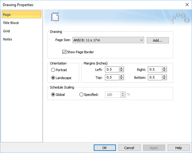 Figura 1: Opções de Propriedades de Páginas do Desenho