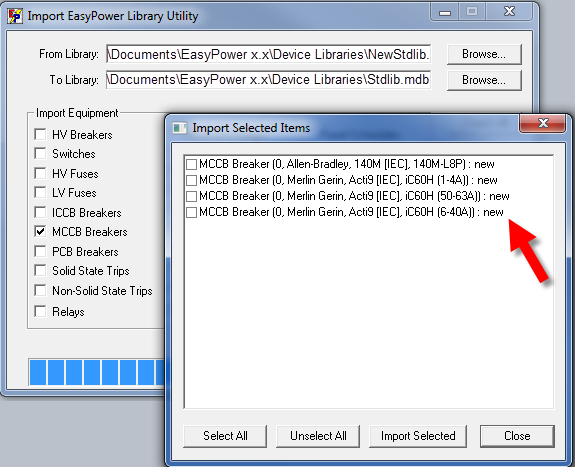 - Inicie o utilitário Importar biblioteca do EasyPower.