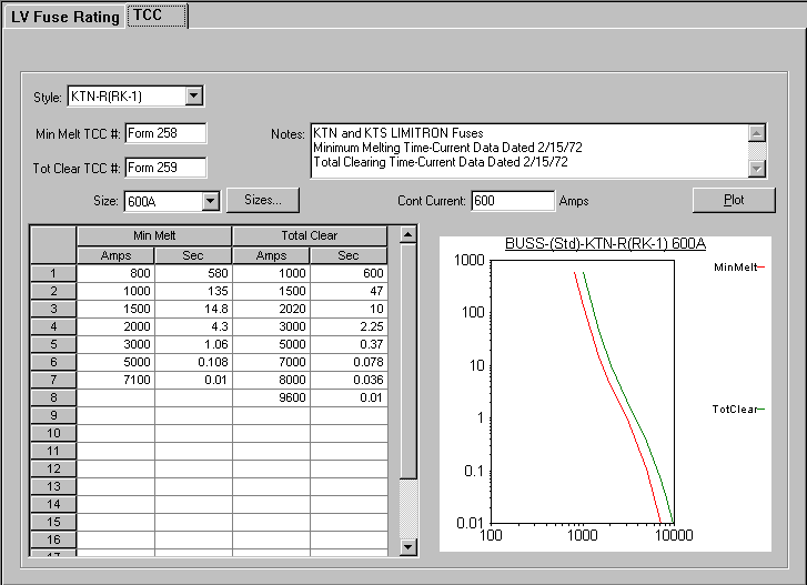 Figura 2: Guia Curva Tempo-Corrente da Caixa de Diálogo de Fusíveis de BT