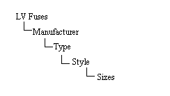 Fusíveis de baixa tensão são similares a fusíveis de AT —veja Fusíveis de Alta Tensão. Entretanto, o Modelo e a Tensão não fazem parte da estrutura da árvore de Fusíveis de BT.
