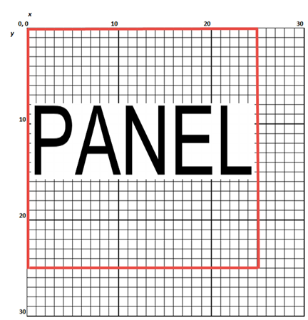 <Text X="12" Y="12" Width="25" Height="8" Label="PANEL" FontName="Arial" FontSize="5" HorizontalAlignment="Center" VerticalAlignment="Center" Justification="Center"/>