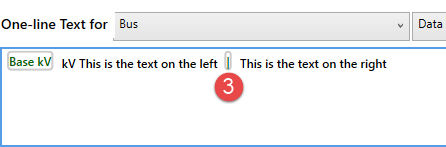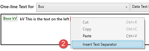 Para criar segmentos de texto separados em textos do unifilar customizado, use separador de texto. Por exemplo, você poderia fazer isto para tornar possível aplicar condições de exibição para apenas uma porção do texto em uma longa "string" de texto.