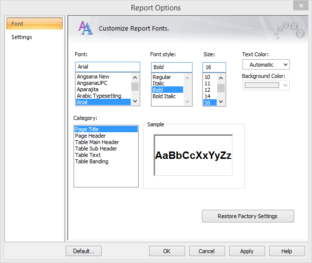 Tipo de informação como título, cabeçalho ou resultados. Selecione a categoria desejada primeiro para customizar o tamanho, o estilo e cor da fonte.
