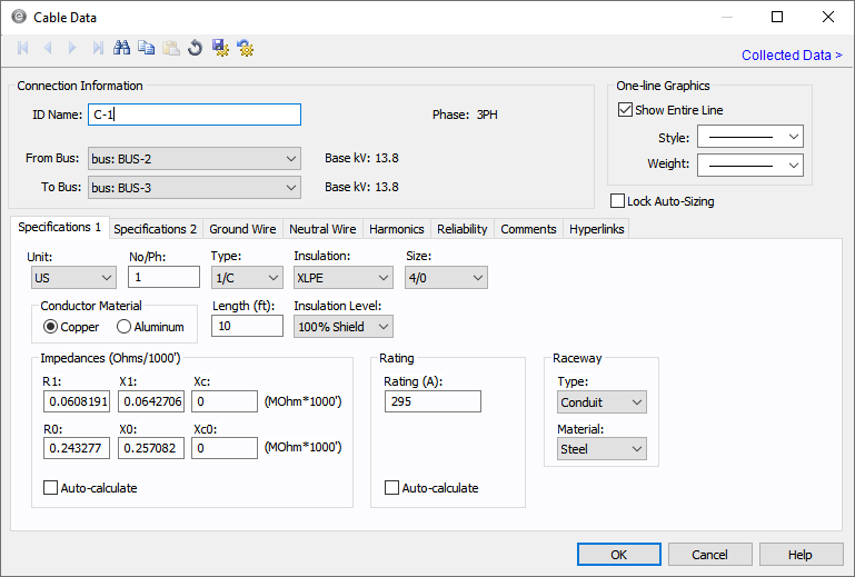Figura 1: Caixa de Diálogo dos Dados de Cabo (Cabo em CA)