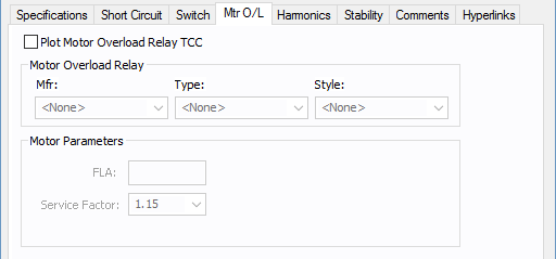 Para plotar uma Coordenograma (TCC) de relé de sobrecarga de um motor com a chave fusível na Coordenograma (TCC), marque esta caixa de seleção. Se você não marcar esta caixa de seleção, então nenhuma TCC será plotada para o relé de sobrecarga do motor.