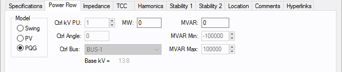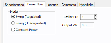 Tipo de barra de gerador usado na modelagem da simulação do fluxo de potência. Quando você seleciona um modelo particular, aqueles campos que não se aplicam tornam-se indisponíveis.