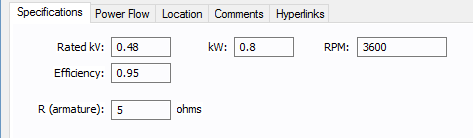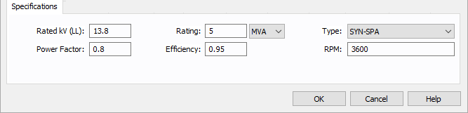 Rotações por minuto da máquina. Este valor é apenas para referência e não afeta os cálculos. Por default, ANSI e IEC usam 3600 e 3000 respectivamente, a menos que os ajustes default no equipamento gerador seja configurado com um valor diferente. |