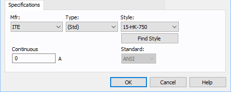 Norma para o disjuntor (ANSI or IEC) baseada no Tipo escolhido, que aparece aqui apenas como referência. Observe que isto afeta os valores que aparecem na guia Curto-Circuito. |
