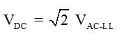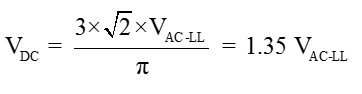 Esta equação é para um retificador de 6 pulsos e inclui o "ripple" do lado da barra CC, e é tipicamente usada em sistemas CC que não incluem um grande capacitor de alisamento; sistemas tais como HVDC e grandes retificadores simples. Se você sabe que a barra CC inclui um capacitor CC na barra, e que em condições de carga o ripple é mínimo, você deve usar: