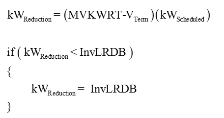 Esta configuração é utilizada para ajudar a se obter uma solução mais rápida quando os inversores estão reduzindo sua carga para atingir o Limite de Mínima Tensão de Redução de kW (MVKWRT). Na condição onde a tensão de entrada CC de um Inversor cai abaixo do MVKWRT, é necessario reduzir os kW de carga requeridos do lado CC pelo Inversor. Isto é acompanhado em cada iteração usando: