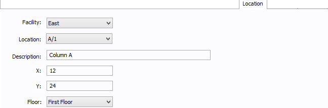 Você pode especificar a localização do equipamento sobre o piso de um edifício. Você pode dar o nome da localização, especificar as coordenadas X e Y do local e selecionar o piso.
