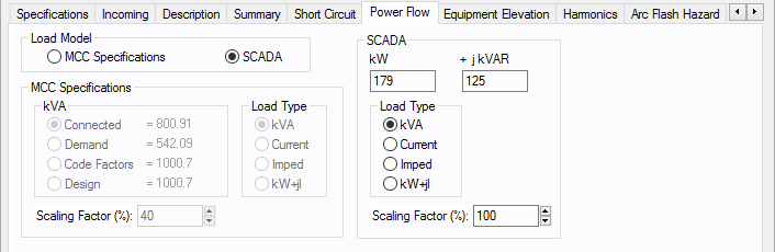 Provê uma maneira fácil de ajustar a carga total de motor usada na determinaçao dos fluxos de potência. Alterando-se o fator de escala, o os HP reais (valor total conectado) introduzido no campo HP pode permanecer estático. Isto reduz erros de modelagem e elimina base de dados múltiplas para diferentes contingências.