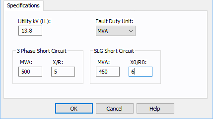 Quando Zpu é selecionado como unidade de falta, você também precisa especificar o MVA Base da concessionária para que se possa obter os valores em por unidade.