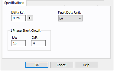 O campo Tensão da concessionária (kV) representa a tensão máxima entre os condutores em uma rede de concessionária. Esse valor é usado para calcular a impedância por unidade. Isto não afeta a tensão controlada do fluxo de potência.