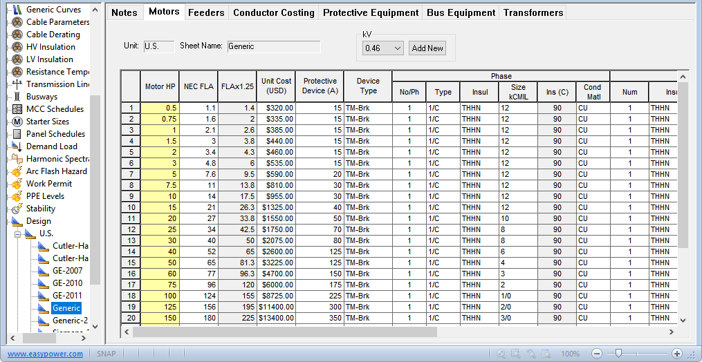 | Motores | Para dimensionar dispositivos de proteção e cabos em circuitos de motor com base no tamanho do motor. Veja Motores. |