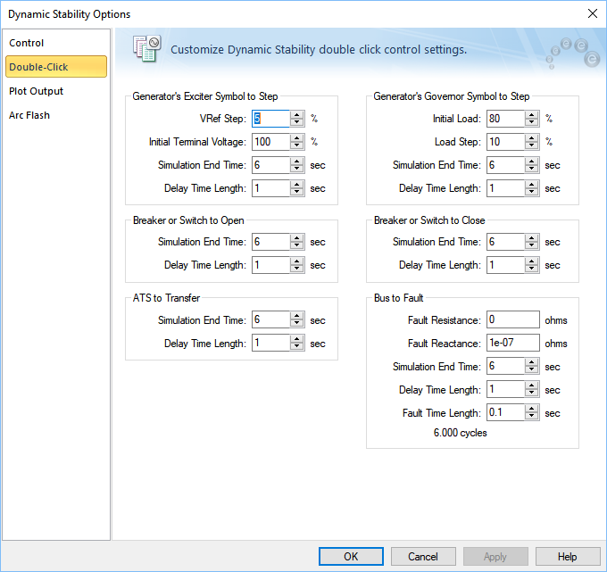 Figura 1: Opções de estabilidade dinâmica - Guia Clique duplo