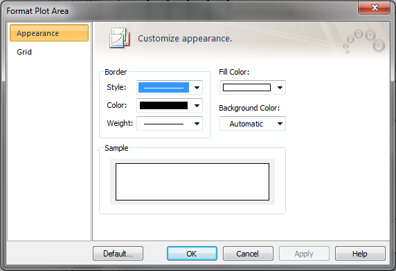 Você pode formatar a borda da área de plotagem, plano de fundo, cor de preechimento e linhas de grade.