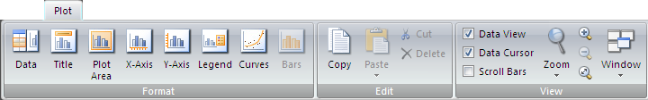 Para formatar a plotagem, dê um clique com o botão direito do mouse, na área de plotagem e escolha o comando desejado no menu de contexto, ou selecione a opção na guia Plotar. As seguintes opções de formatação são disponíveis.