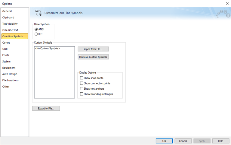 Foram adicionados novos modelos que permitem ajustar manualmente os símbolos do equipamento usando XML. Você pode usar Locais dos arquivos para controlar quais modelos serão usados para os novos unifilares. Veja Customizando os Símbolos do Unifilar para maiores informações.