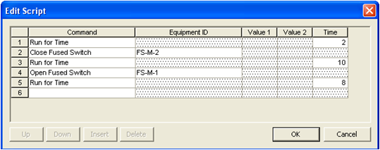 - Antes de rodar um Script, é importante revisar as condições iniciais do unifilar. Uma vez que se planeja partir o motor M-2, os dispositivos a montante deste motor devem estar abertos.