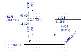 Perdas. As perdas em kW e kVAr dos transformadores e cabos são apresentadas na tela (veja figura abaixo). - Clique em