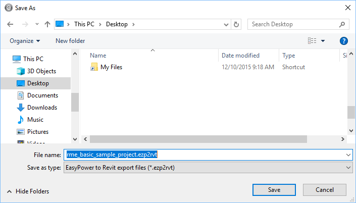 - O programa pede um nome de arquivo e localização. Você pode usar o nome que quiser, mas o arquivo deve ter a extensão .ezp2rvt. Anote a localização do arquivo e clique em Salvar.