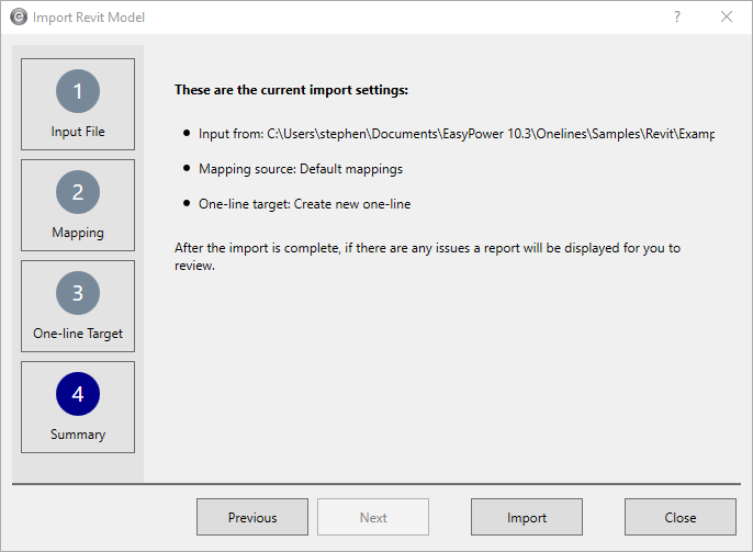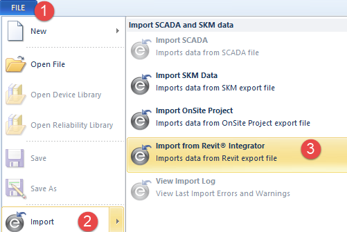 - No EasyPower, selecione Arquivo > Importar > Importar do Revit® Integrator.