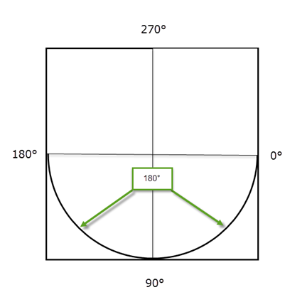 Um arco é exibido partindo de 270 graus com um ângulo de varredura de 180 graus.