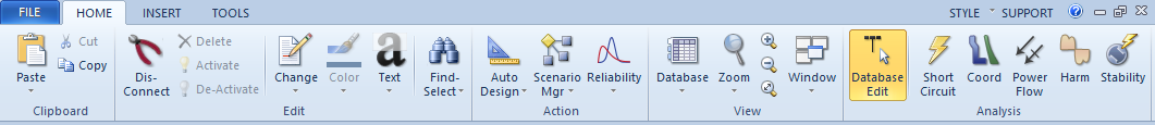 Cintas de opciones se introdujeron en EasyPower 9.0 y proporcionan una manera más eficiente para trabajar con EasyPower. Las versiones anteriores apoyaron una barra de menús y barras de herramientas.