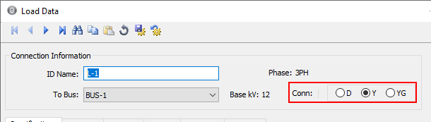 La sección Datos de Carga - Información de Conexión del cuadro de diálogo ahora incluye la capacidad para seleccionar conexiones delta, estrella o estrella-delta
